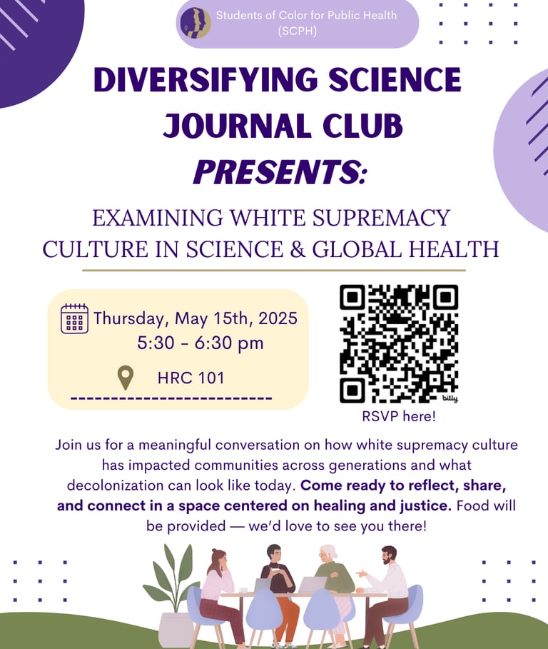 Students worked with Dr. Nina Kim to shape and launch an inaugural Journal Club for students & faculty. They created a space for attendees to learn and brainstorm how we can use theories like Critical Race Theory to decolonize research.
